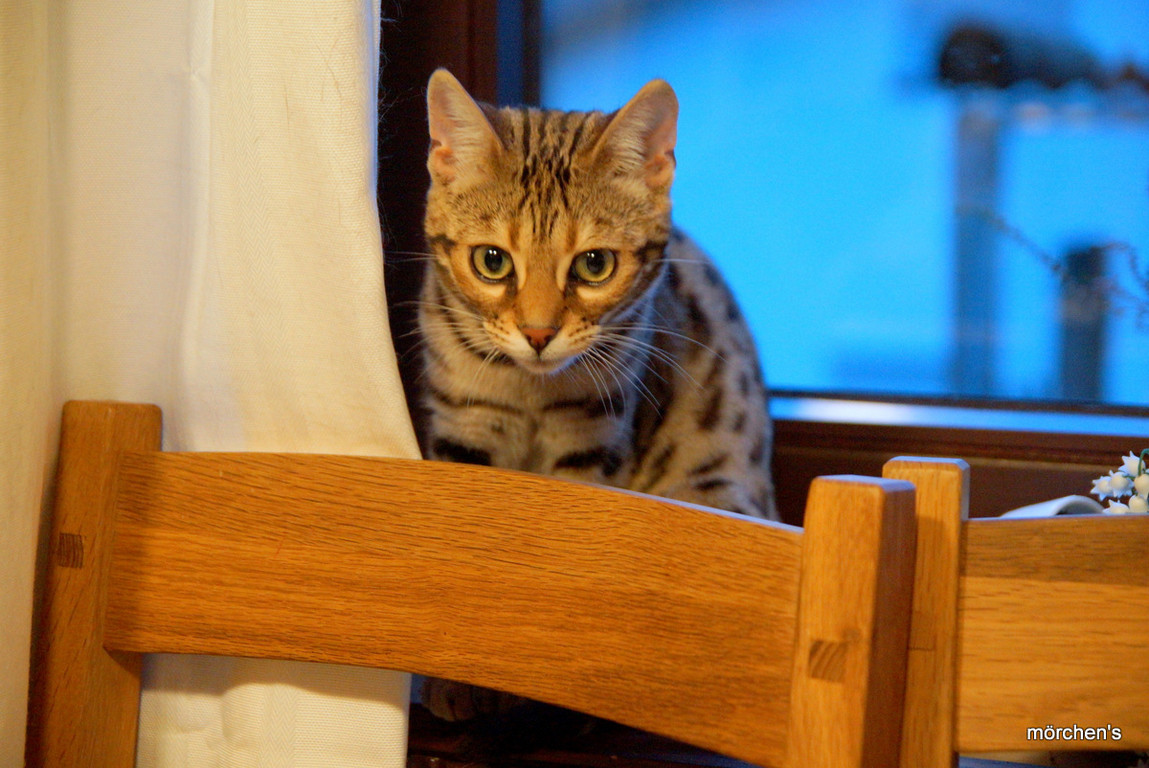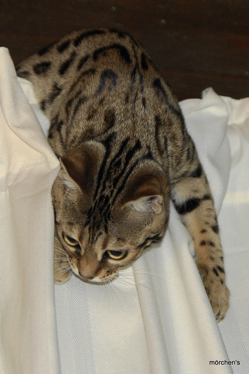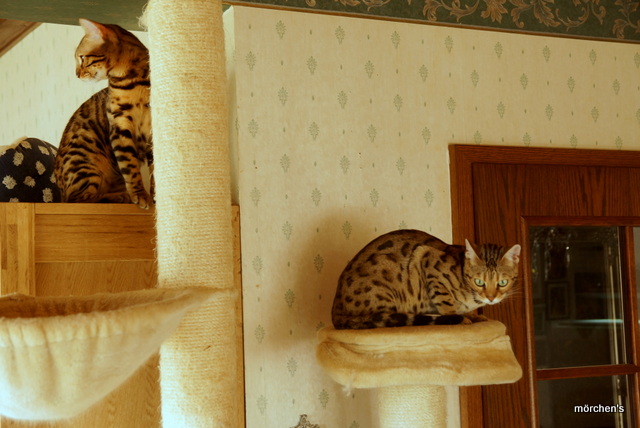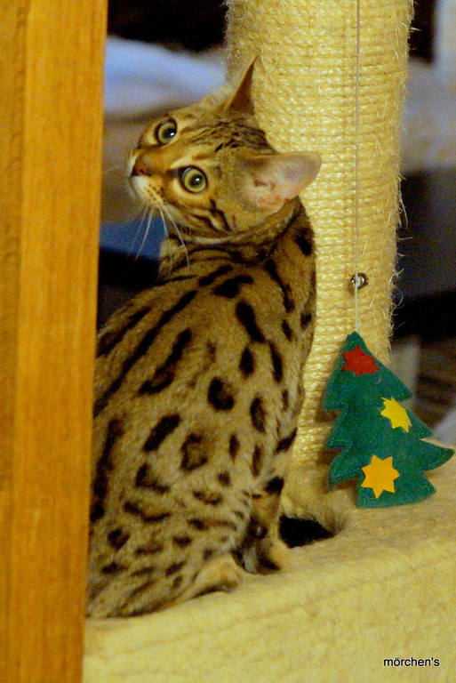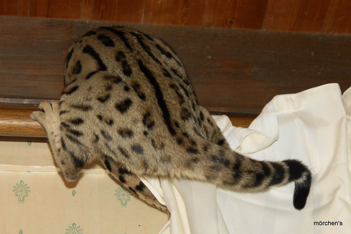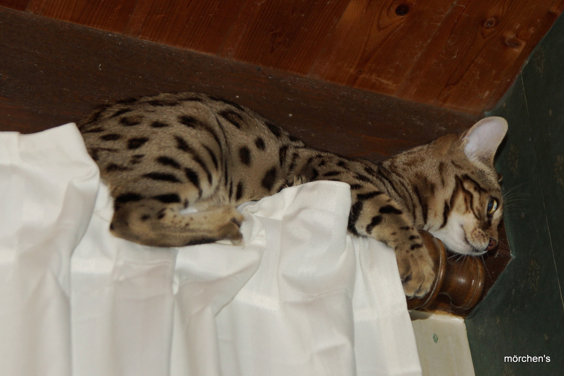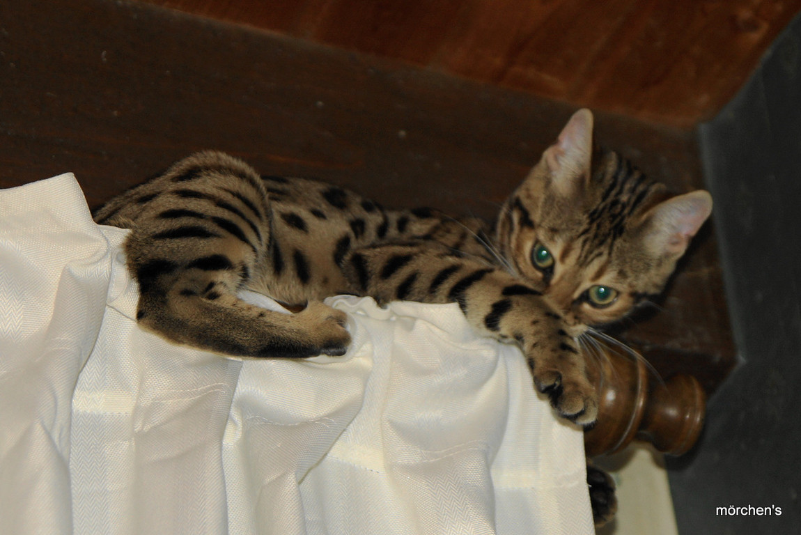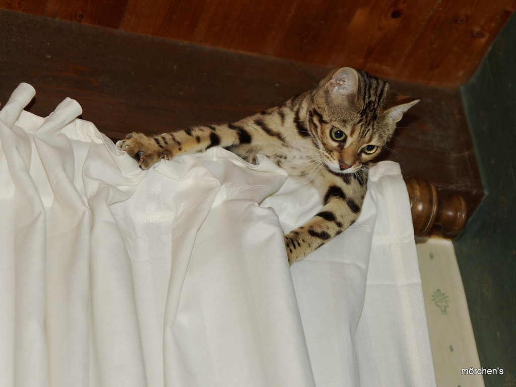 Unsere Fondation Bengalkatze F4 ist im Alter von 14 Wochen zu uns gekommenund. Sie lebt und spielt mit den anderen Hauskatzen zusammen.