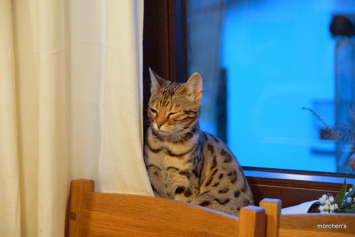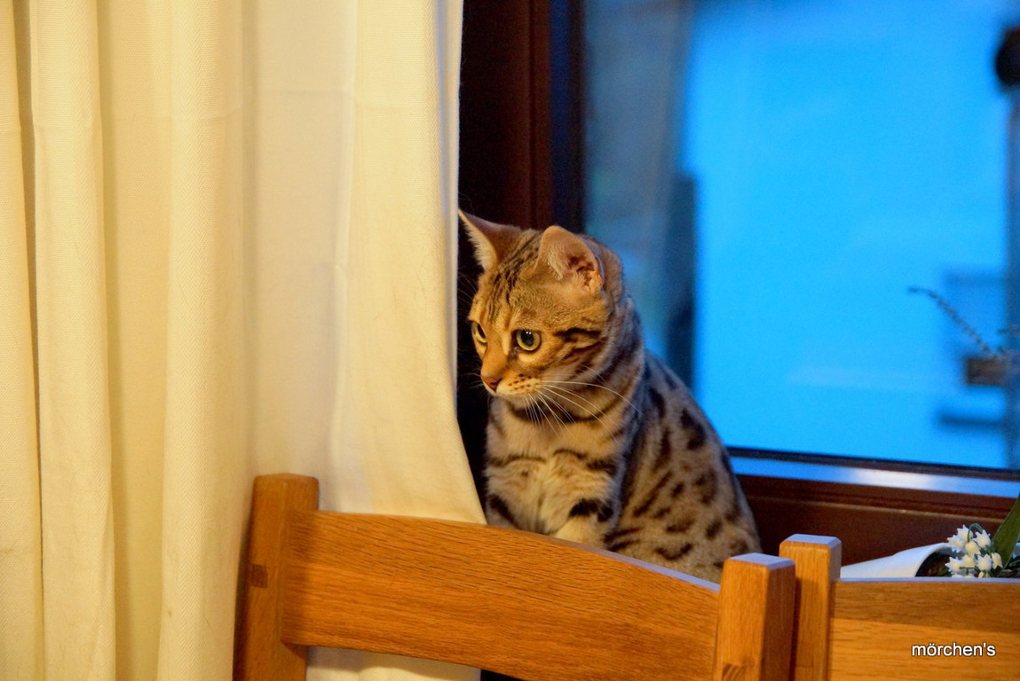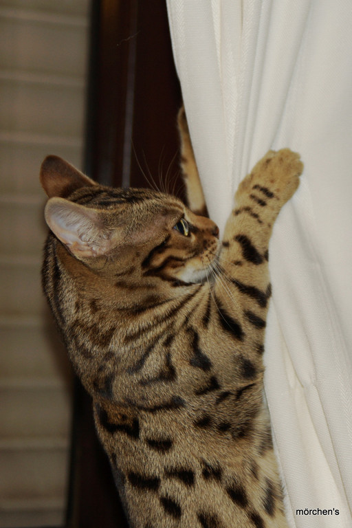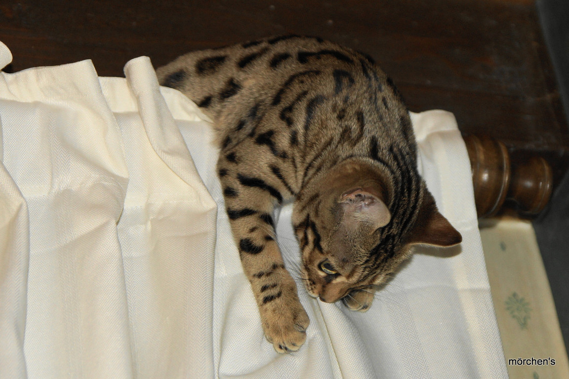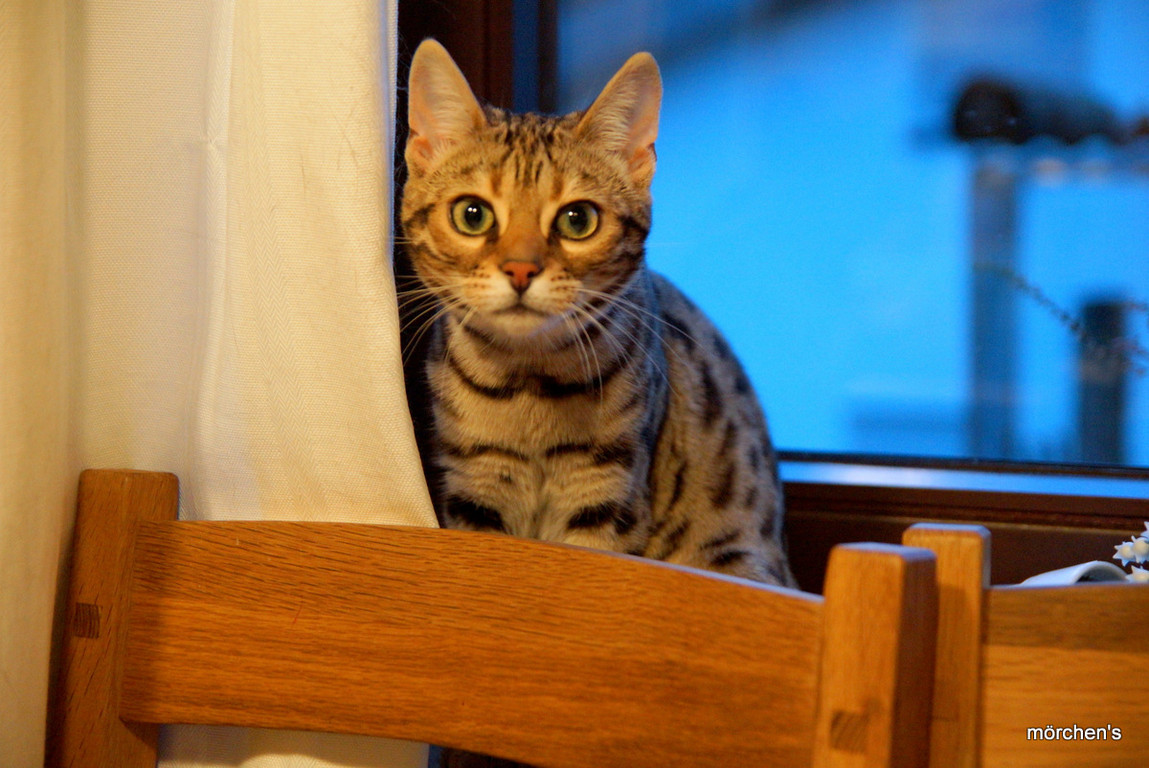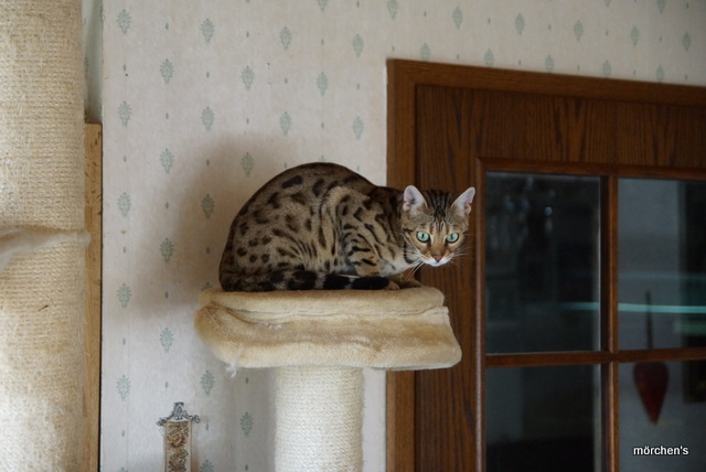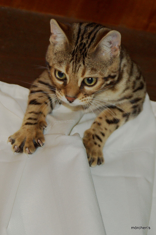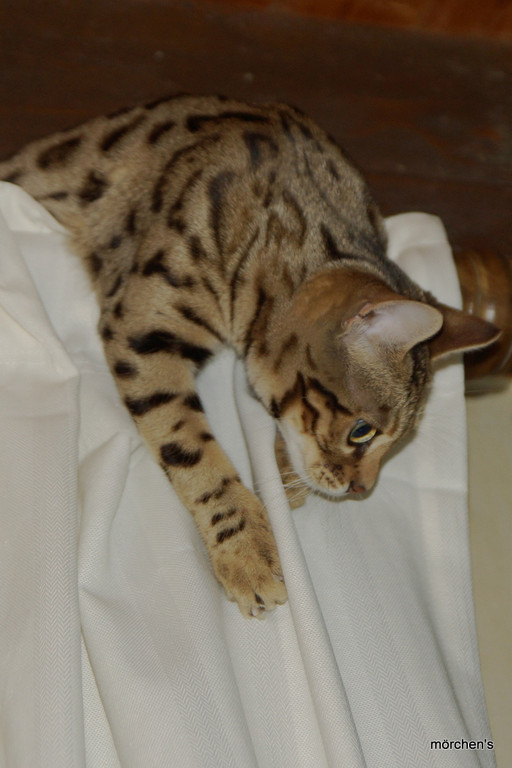Unsere Fondation Bengalkatze F4 ist im Alter von 14 Wochen zu uns gekommenund. Sie lebt und spielt mit den anderen Hauskatzen zusammen.